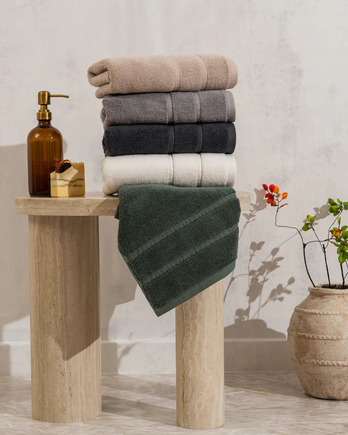 Crafted from premium Aegean cotton, these towels combine natural purity with exceptional quality through their long-pile design and ultra-soft texture. They bring a unique spa-like comfort to your daily bathing routine while giving your sensitive skin the care it truly deserves.